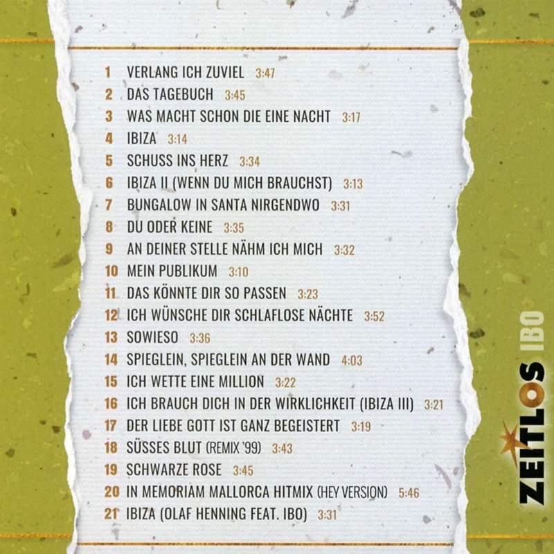 „Ibiza“! Dieser Song ist untrennbar mit dem Namen des Künstlers verbunden, für den es sein größter Hit war, nämlich IBO. Ganze fünfzehn Wochen lang konnte sich der Titel im Jahr 1985 in den deutschen Charts halten. Bis heute darf „Ibiza“ auf keiner Sommer- und Schlager-Party fehlen. Im Rahmen der beliebten Reihe „Zeitlos“ gibt es deshalb jetzt auch die Ausgabe „Zeitlos“ Ibo. Schon vor „Ibiza“ gab es im Jahr 1983 die Single „Verlang‘ ich zuviel“ und 1984 „Was macht schon die eine Nacht“. Beginnend mit dem Hit „Ibiza“ reihten sich beim gebürtigen Mazedonier Erfolg an Erfolg: „Ibiza Teil 2 (Wenn du mich brauchst)“, „Bungalow in Santa Nirgendwo“, „Du oder keine“, „An deiner Stelle nähm ich mich“, „Sowieso“, „Spieglein, Spieglein an der Wand“, „Ich brauch Dich in der Wirklichkeit (Ibiza III)“, „Süßes Blut (Remix ’99)“ und viele mehr. Im Jahr 1996 nahm Ibo mit „Der liebe Gott ist ganz begeistert“ am deutschen Vorentscheid zum Eurovision Song Contest teil. Alle genannten Hits und weitere befinden sich auf „Zeitlos“ Ibo. Als besonderes Schmankerl finden sich mit „Das Tagebuch“ und „Schuß ins Herz“ auch zwei B-Seiten früher Veröffentlichungen, sowie die posthum produzierte und veröffentliche Version des Titels „Ibiza“ von Olaf Henning feat. Ibo auf der Zusammenstellung des Künstlers, der im Jahr 2000 unfassbar früh bei einem Autounfall verstarb. Sein Song „Schwarze Rose“ rührt bis heute seine Fans und der „In Memoriam Mallorca Hitmix (Hey Version)“ erinnerte im Nachhinein an seine großen Erfolge.